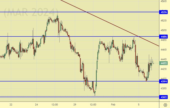 Пшеница (мартовский контракт, CME Group, исполнение 14.03.2024)