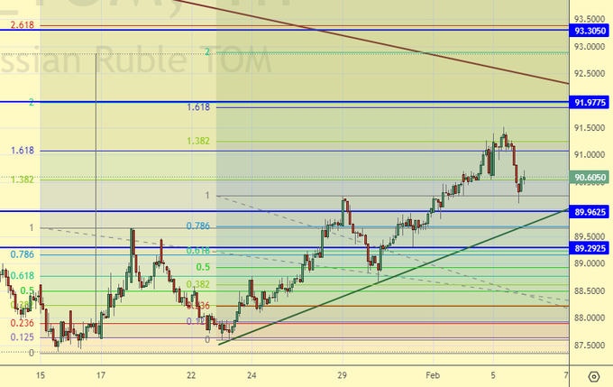 Покупка: при подходе к 89.50. Стоп: 89.20. Цель: 93.30.
