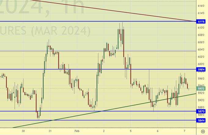 Пшеница (мартовский контракт, CME Group, исполнение 14.03.2024)