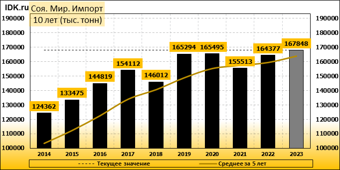 Импорт: составит 167848 тысяч тонн. Значение по прошествии месяца упало на -0.3 процента.