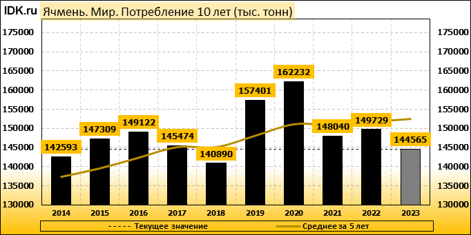 Потребление: показатель пересмотрен в сторону понижения до 144565 тысяч тонн. Значение упало на -0.07 процента.