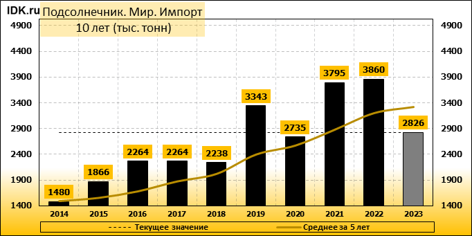 Импорт: составит 2826 тысяч тонн. Значение по прошествии месяца поднялось на 1.62 процента.