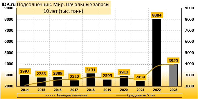Конечные запасы: составят 3122 тысячи тонн. Оценка с последнего отчета снизилась на -0.73 процента.