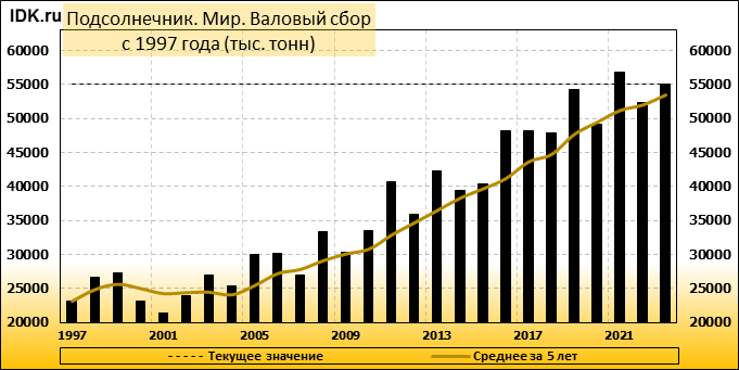 Валовый сбор: оценка пересмотрена в сторону понижения до 55075 тысяч тонн. Показатель упал на -0.84 процента.