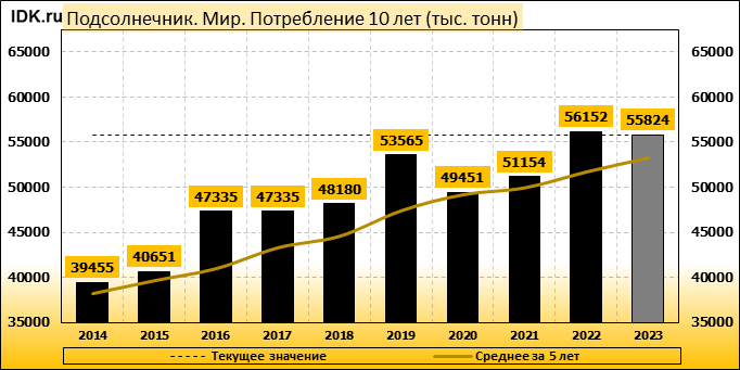Потребление: показатель пересмотрен в сторону понижения до 55824 тысяч тонн. Значение упало на -0.77 процента.