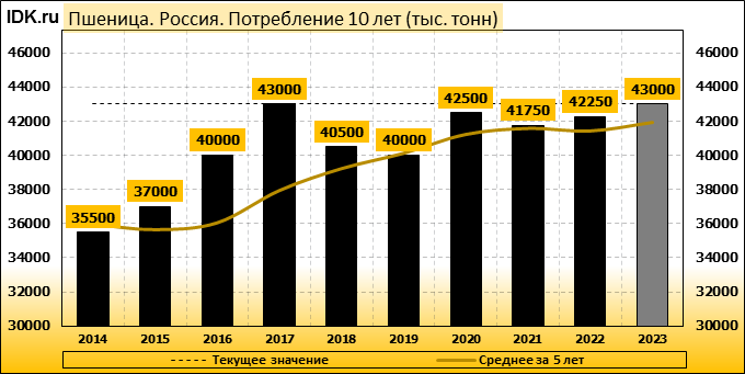 Потребление: показатель не изменился и составляет 43000 тысяч тонн.