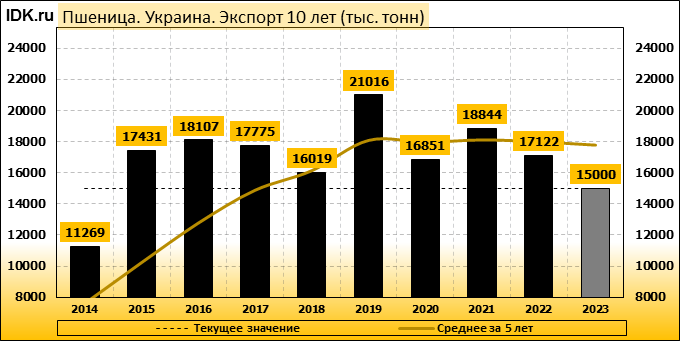 Экспорт: оценивается в 15000 тысяч тонн. За месяц показатель вырос на 7.14 процента.