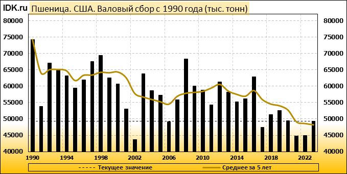 В точных цифрах в денежном выражении он составил 191 миллиард долларов. Кроме того, это на 17 процентов ниже рекордного показателя за 2022 год, что также стало крупнейшим годовым сокращением с 1985 года. Речь идёт о наиболее прибыльных ранее видах сельхозтоваров таких как пшеница, бобы сои, кукуруза, хлопок и другие. Поясняется, что подобная ситуация связана с высокими ценами на продукцию и увеличением её предложения в прямых странах-конкурентах США на мировом аграрном рынке. Именно подобные факторы могут серьёзно снизить спрос даже на наиболее востребованные виды сельхозтоваров.