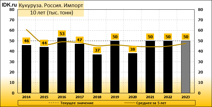 Импорт: составит 50 тысяч тонн. Значение по прошествии месяца не изменилось.