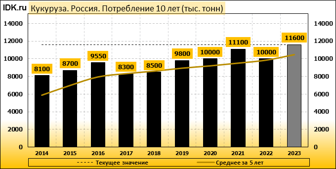 Потребление: показатель не изменился и составляет 11600 тысяч тонн.