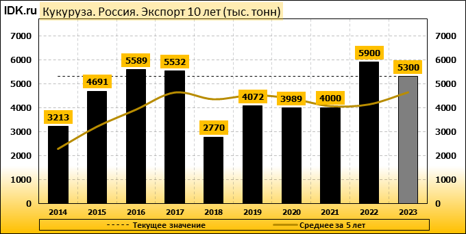 Экспорт: оценивается в 5300 тысяч тонн. За месяц показатель не претерпел изменений.