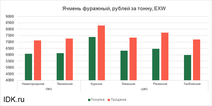 За прошедшую неделю с 12.02.2024 по 16.02.2024 средняя цена на фуражный ячмень, согласно выставленным заявкам трейдеров, выросла по всем округам на 92 рубля. Средняя цена составляет 6867 рублей за тонну.