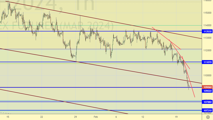 Российские бумаги вчера теряли в рублях, а курс рубля к доллару находился на месте, что привело к падению индекса РТС. Видим ускорение падения цены, что подразумевает прокол и отскок. Близко находится ряд уровней поддержки пройти через которые с наскоку будет непросто.