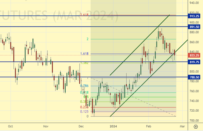 Сценарий роста: рассматриваем мартовский фьючерс, дата экспирации 12 марта. Продолжим покупать, так как нельзя исключать хода к 913.00.
