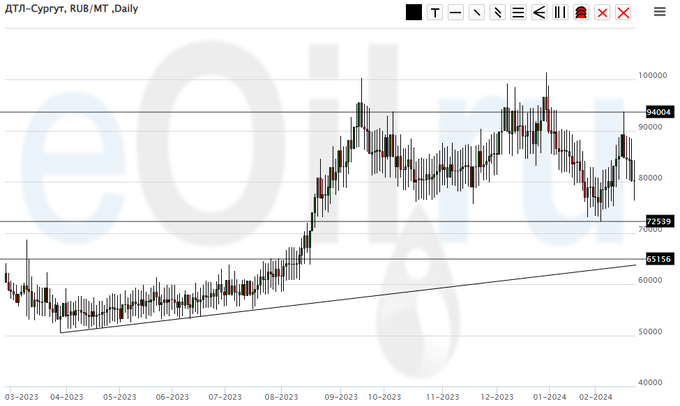 Сценарий падения: воздержимся от шортов. Явно спрос на топливо внутри страны сейчас находится на высоком уровне. С другой стороны, срывы поставок морем могут в будущем привести к затовариванию.