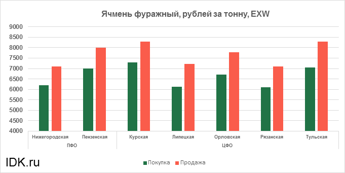 За прошедшую неделю с 19.02.2024 по 23.02.2024 средняя цена на фуражный ячмень, согласно выставленным заявкам трейдеров, выросла по всем округам на 207 рублей. Средняя цена составляет 7074 рубля за тонну.