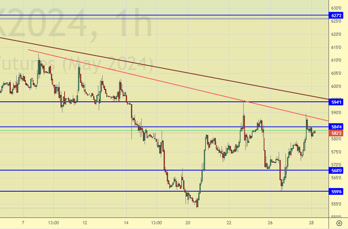 Пшеница (майский контракт, CME Group, исполнение 14.05.2024)