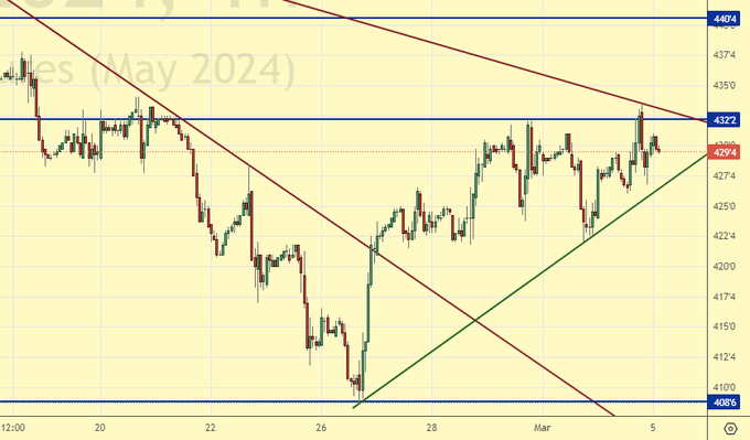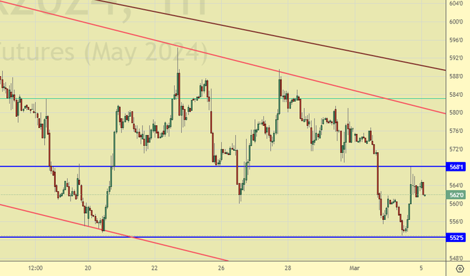 Пшеница (майский контракт, CME Group, исполнение 14.05.2024)
