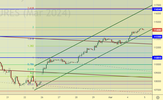 Скорее всего сегодня-завтра увидим откат к 111000. А вот пройти ниже будет непросто. Технически быки могут навязать здесь свою волю и протолкнуть рынок выше 115000, что заставит нас говорить о покупках. Останется только понять на чем мы будем расти с фундаментальной точки зрения. Правда, иногда это не нужно… У шортистов шансов мало.