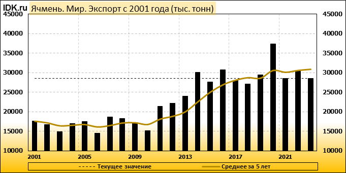 Россия является вторым по величине производителем ячменя с объемом производства около 20,5 миллионов тонн.