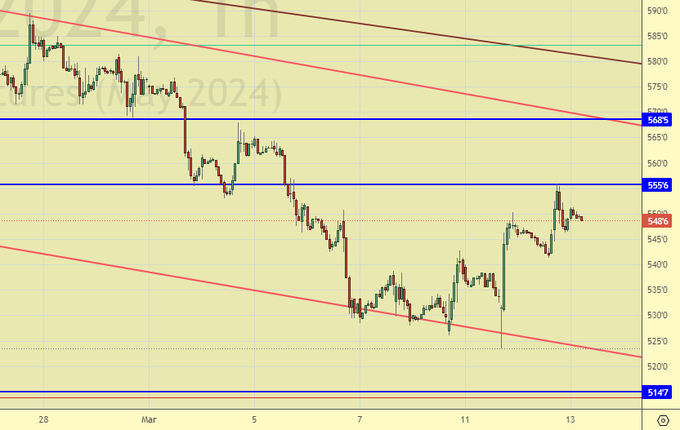 Пшеница (майский контракт, CME Group, исполнение 14.05.2024)