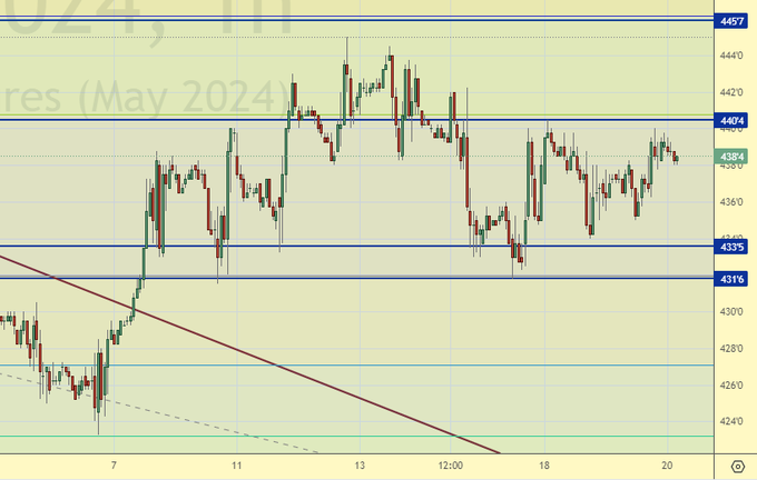Продолжаем стоять над 430.0, что вызывает смешанные чувства на фоне сильных данных по валовому сбору кукурузы. Желающие могут войти в шорт на текущих уровнях или добавить к уже имеющимся продажам.