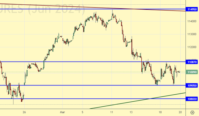 Продажа: нет. Кто в позиции от 114000 (с учетом перехода на июньский контракт), держите стоп на 113600. Цель: 80000.