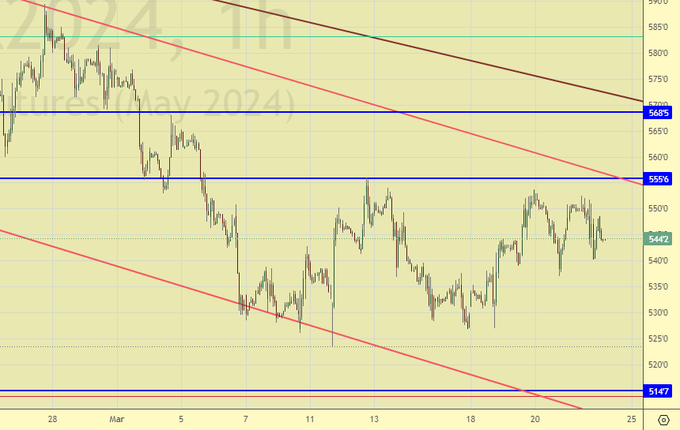 Пшеница (майский контракт, CME Group, исполнение 14.05.2024)