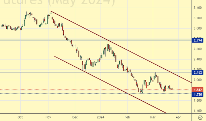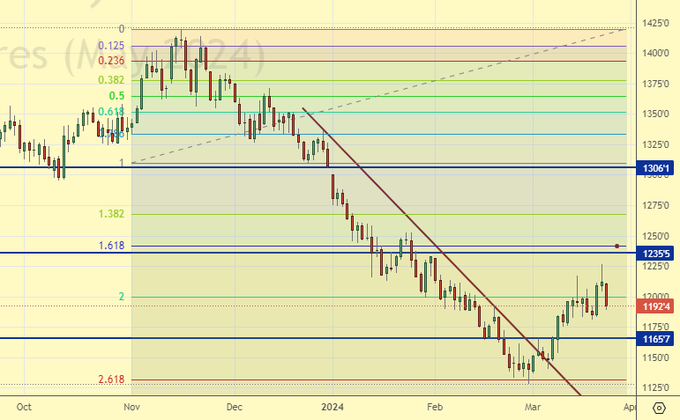 Сценарий роста: перешли на апрельский фьючерс, дата экспирации 11 апреля. Продолжим держать лонг. Пока ситуация благоприятна.