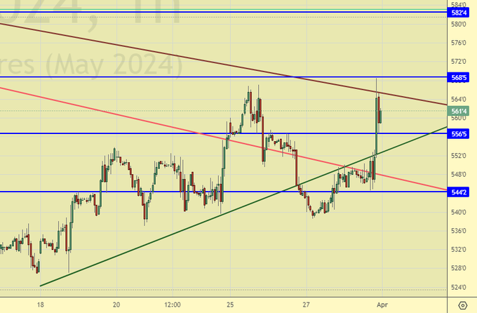 Пшеница (майский контракт, CME Group, исполнение 14.05.2024)