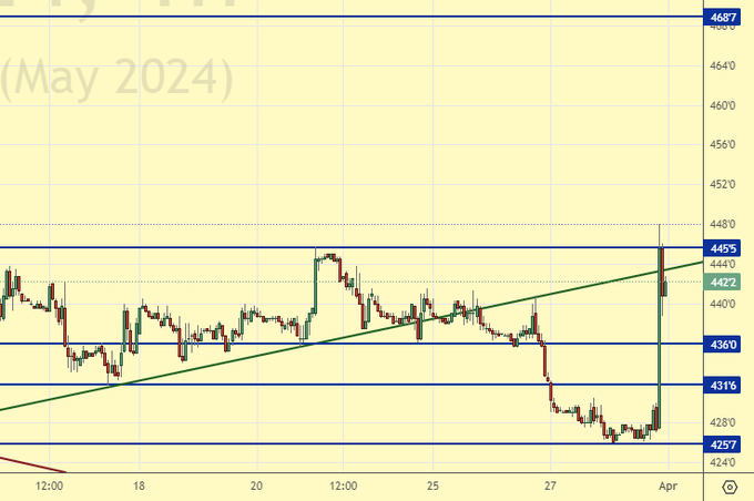 Резкое падение посевных площадей в США по пшенице – на 4% и кукурузе на 5% год к году вызвало сильный рост цен на рынке зерновых. Отчет вышел вчера. Эти данные могут стимулировать рост цен на протяжении нескольких недель несмотря на то, что на рынке наблюдается профицит предложения. Цены в Чикаго на эмоциях могут сильно отличаться на моменте от того, что происходит в остальном мире.