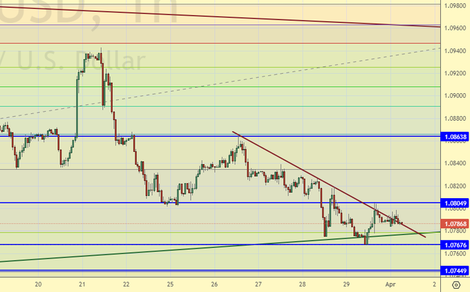 Продажа: нет. Кто в позиции от 1.0934, держите стоп на 1.0830. Цель: 1.0360.
