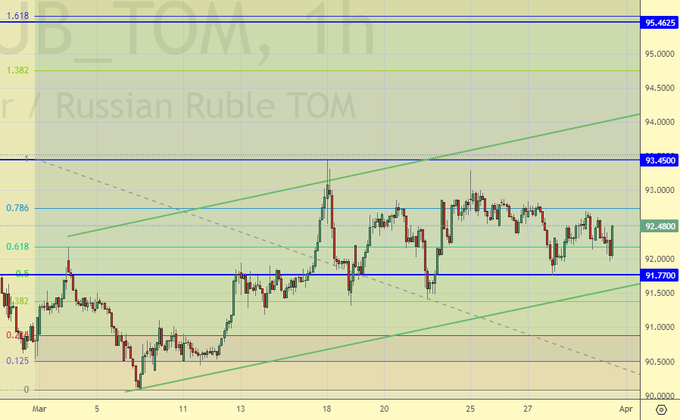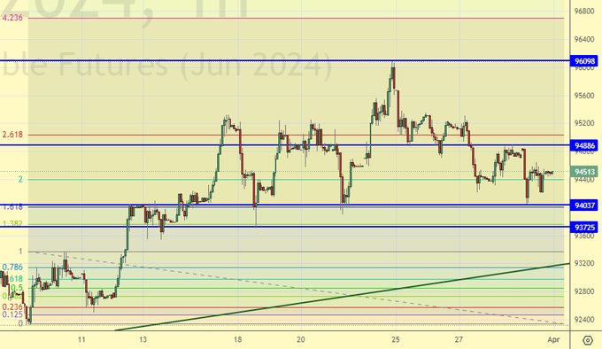 Быки по евро должны сегодня что-то придумать, в противном случае будем падать, но задача по закреплению ниже 1.0750 пока не решена. Если пройдем через 1.0750 вниз, то отправимся в начале к 1.0600, затем к 1.0360. Раскачивать собственный ВПК Европа не торопится, что в случае затухания конфликта на Украине сделает её ставку на завершение конфликта без серьезных трат с их стороны верной. В этом случае у евро будет шанс на рост.