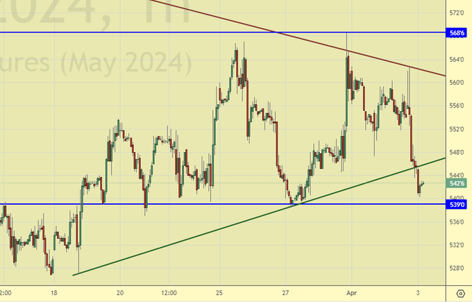 Пшеница (майский контракт, CME Group, исполнение 14.05.2024)