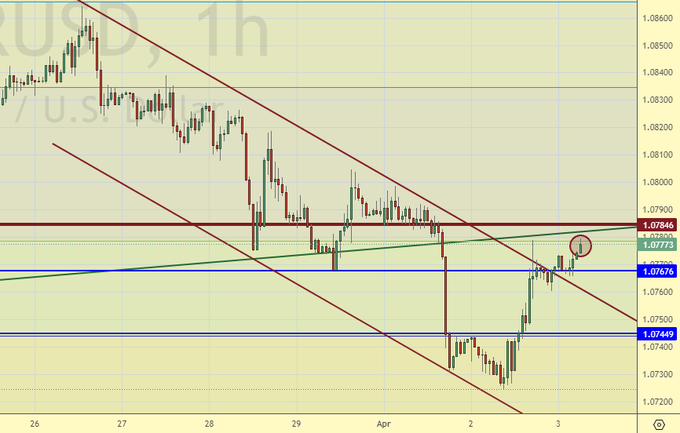 Продажа: нет. Кто в позиции от 1.0934, держите стоп на 1.0810. Цель: 1.0360.