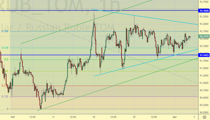Видим диапазон, динамичного выхода из которого у нас, скорее всего, не будет. Если за сегодня и за завтра мы не сможем вырасти, то так и будем обитать в коридоре 91.50 – 93.50.