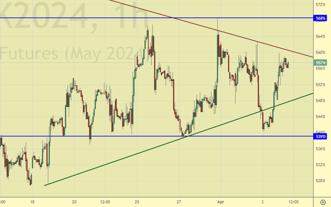 Пшеница (майский контракт, CME Group, исполнение 14.05.2024)