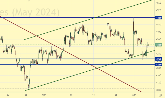 Кукуруза (майский контракт, CME Group, исполнение 14.05.2024)
