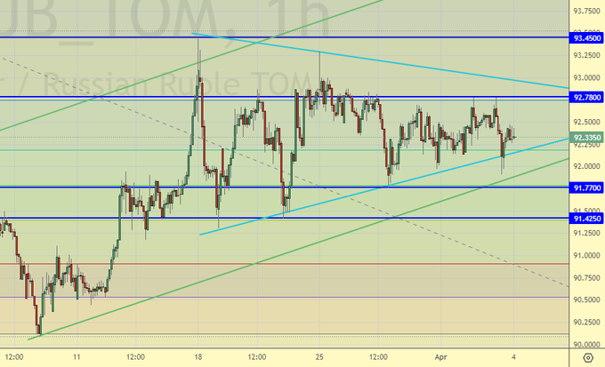 Продолжаем жить в диапазоне 91.50 – 93.50. Учитывая текущее положение дел, ЦБ будет держать курс в этом коридоре, не давая спекулянтам возможности что-либо заработать.