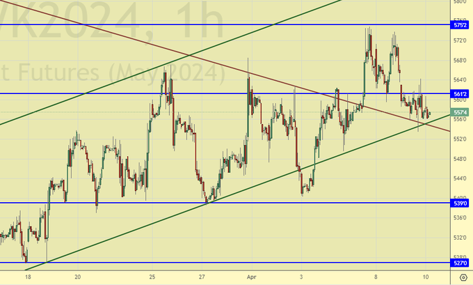 Пшеница (майский контракт, CME Group, исполнение 14.05.2024)