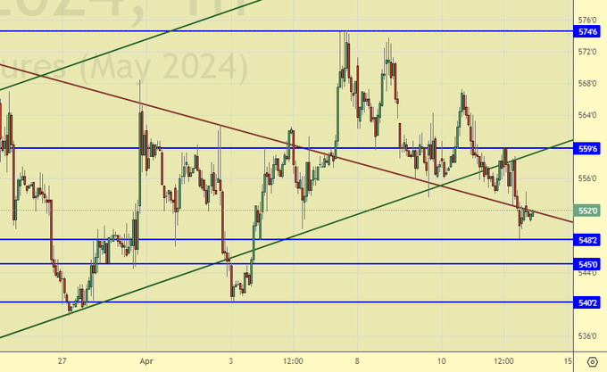 Пшеница (майский контракт, CME Group, исполнение 14.05.2024)