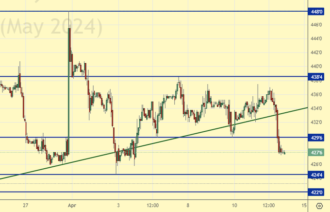 Вышел апрельский отчет USDA который подтвердил, что с урожаем пшеницы, кукурузы и сои всё в порядке в сезоне 23/24. Сюрпризов в этом отчете быть не могло, так как всё учтено, а вот в следующем, когда речь пойдет от прогнозах на сезон 24/25 возможно будут какие-то любопытные цифры. Впрочем, если погода не подведет, а пока она этого не делает, покупателям будет сложно рассчитывать на рост цен.