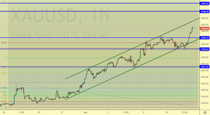 Рынок не откатывает. Мы без коррекции идем к 2440. Видим, что даже перспективы сохранения ставки в США на уровне 5.5% не останавливают золотых быков. На текущих уровнях народы Востока могут подключиться к этому ралли и тогда мы быстро получим 3000. Уже можно констатировать, что Россия нанесла репутационное поражение Западу, а это выльется в рост недоверия. Люди будут думать, прежде чем переводить деньги в доллары.