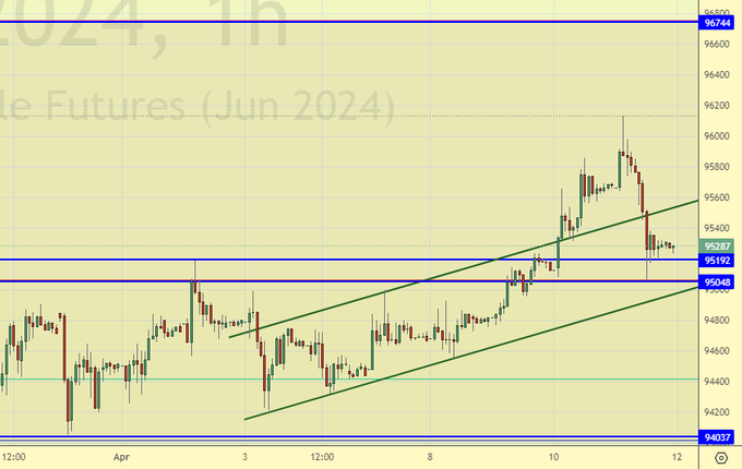 Покупка: нет. Кто в позиции от 95125, держите стоп на 94900. Цель: 96700.