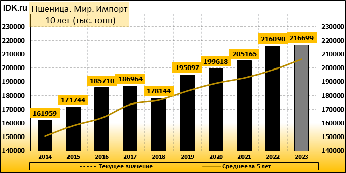 Импорт: составит 216699 тысяч тонн. Значение по прошествии месяца поднялось на 0.62 процента.