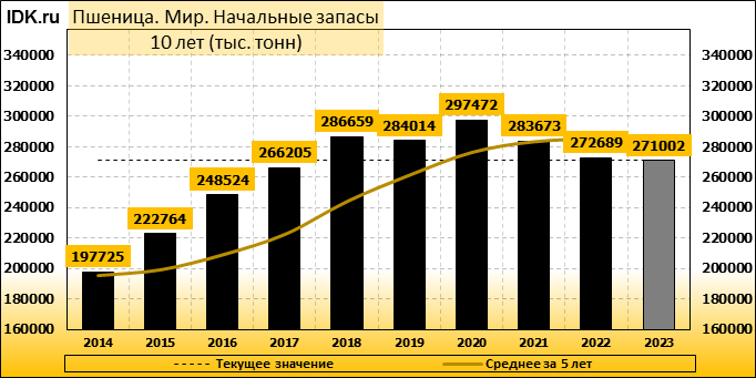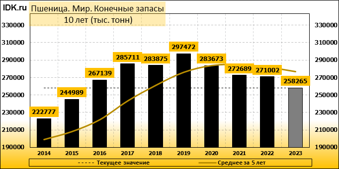 Конечные запасы: составят 258265 тысяч тонн. Оценка с последнего отчета снизилась на -0.22 процента.