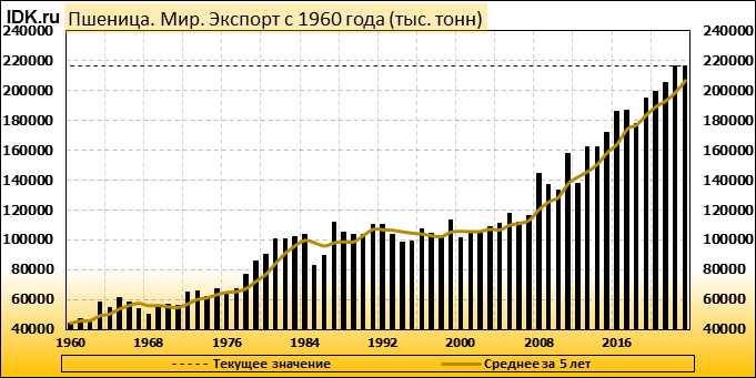 Экспорт: оценивается в 216699 тысяч тонн. За месяц показатель вырос на 0.62 процента.