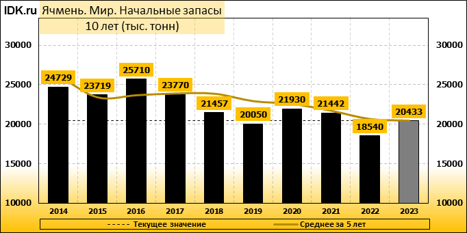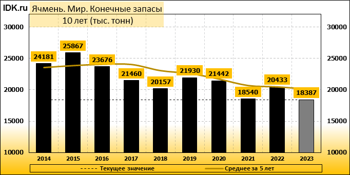 Конечные запасы: составят 18387 тысяч тонн. Оценка с последнего отчета снизилась на -0.85 процента.
