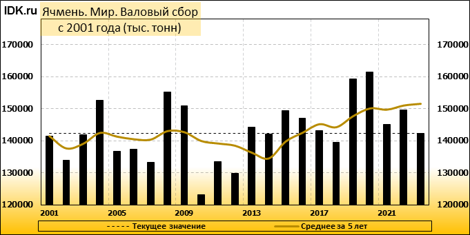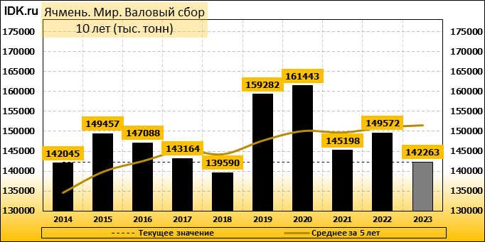 Валовый сбор: оценка пересмотрена в сторону повышения до 142263 тысяч тонн. Показатель вырос на 0.03 процента.