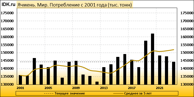 Потребление: показатель пересмотрен в сторону повышения до 144309 тысяч тонн. Значение выросло на 0.39 процента.